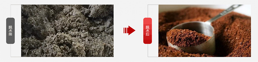茶粉提取廢渣擠壓脫水前后對比: